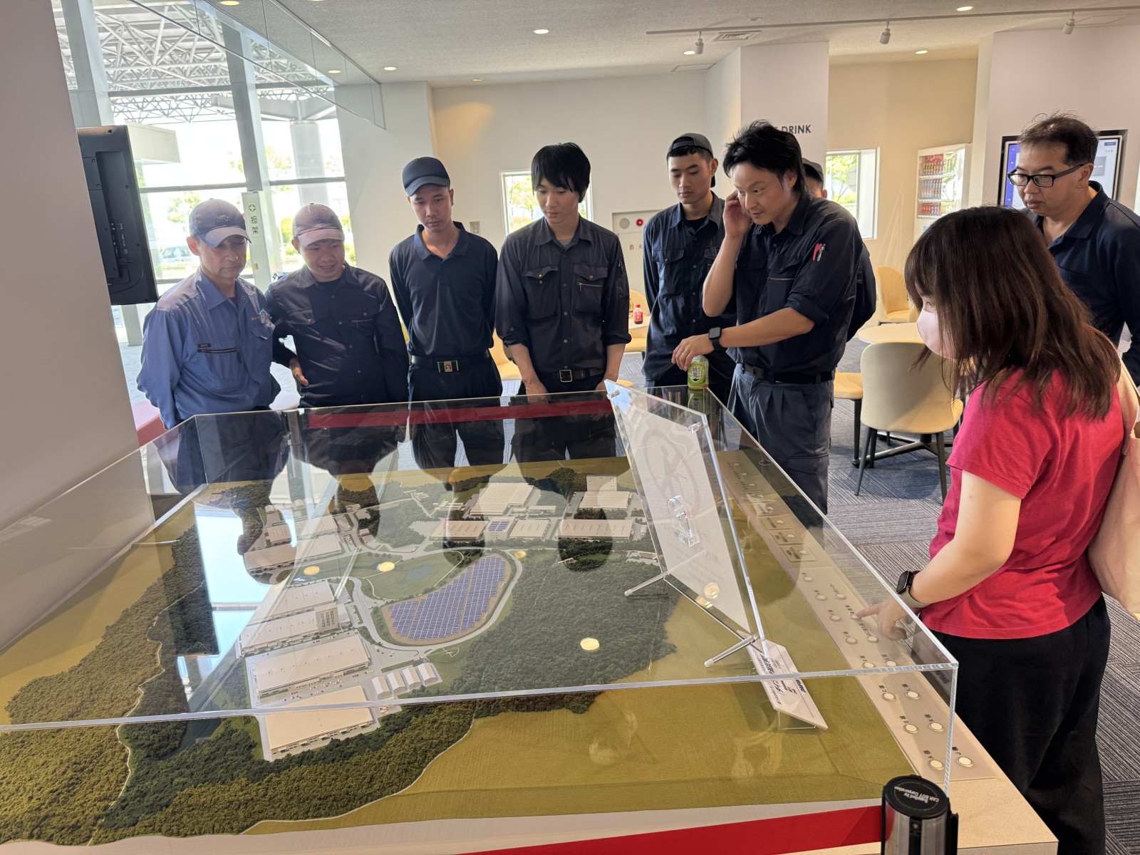 見学の時間まで少しあったのでフリードリンクをいただき、弊社部長、堤よりジオラマを見て各棟の説明を聞きました。
